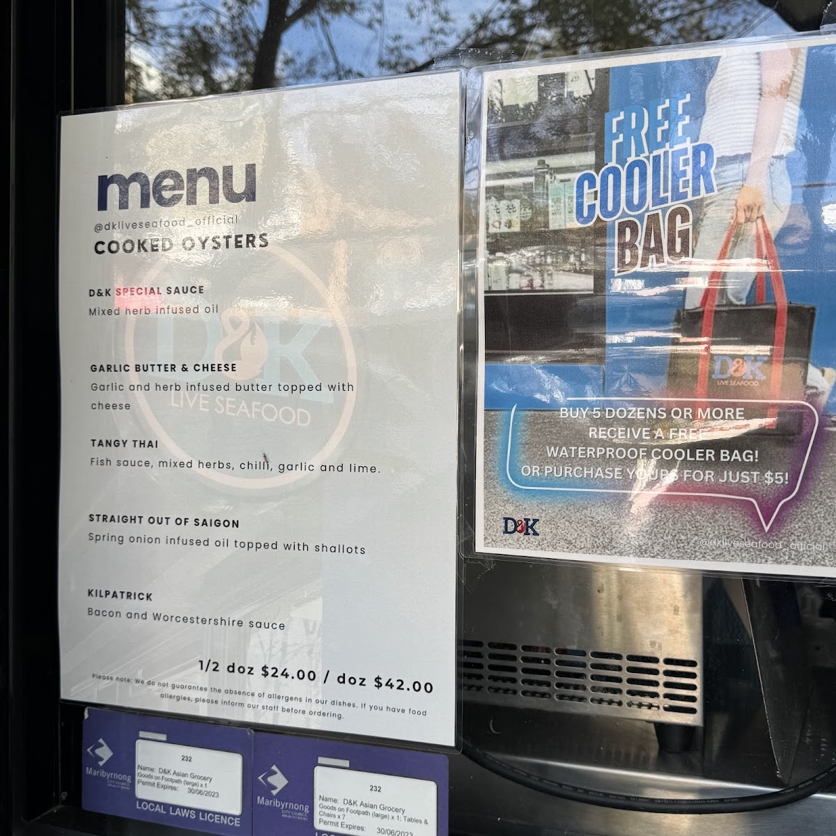 Welcome to D&K Live Seafood, an oceanic gem nestled in Footscray, where quality meets freshness. This seafood haven offers an extensive range of live marine treasures, including a remarkable selection of oysters, lobsters, and even Wagyu beef. The highlight here is the oyster bar, where patrons can enjoy freshly shucked oysters from various regions, including the highly praised Tasmanian Boomer Bay.